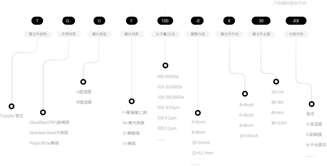 SUN管式膜產(chǎn)品范圍: