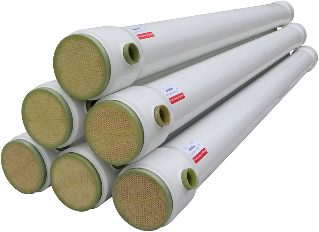 同時擁有高強(qiáng)度、抗污染、抗氧化(PVDF材質(zhì)耐氯250,000ppm.h)、耐酸堿(耐受20%NaOH)膜,純水通量高達(dá)800LMH,部分膜產(chǎn)品工作壓力可達(dá)10bar,工作溫度可達(dá)90℃。即使直接過濾活性污泥濃度高達(dá)40g/L的生活污水,膜通量仍然高達(dá)70~150LMH。