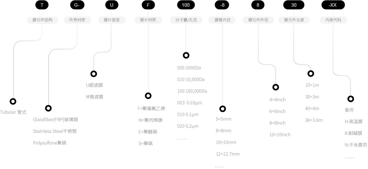 管式膜材質(zhì)∶PVDF、PES、PAN、PS