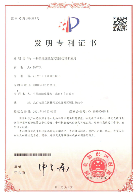 中科瑞陽膜技術(shù)(北京)有限公司是國家級高新技術(shù)企業(yè),中關(guān)村科技園高新技術(shù)企業(yè),中國膜工業(yè)協(xié)會信用評價3A級企業(yè),專注于液體分離過濾膜產(chǎn)品的研發(fā)、生產(chǎn)、應(yīng)用和服務(wù)。公司產(chǎn)品涵蓋各類膜元件型式及不同大小的截留分子量,從微濾、超濾、納濾到反滲透,從卷式,平板到管式膜元件。公司產(chǎn)品在廢水、生物發(fā)酵、醫(yī)藥、染料和電泳涂裝行業(yè)中均有廣泛應(yīng)用,并與國內(nèi)外多家知名企業(yè)合作。